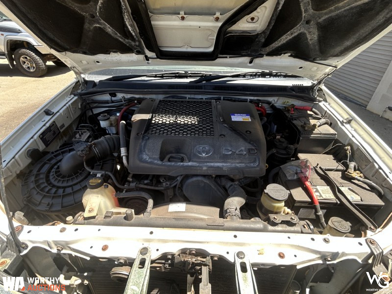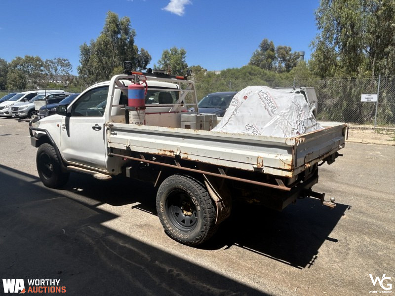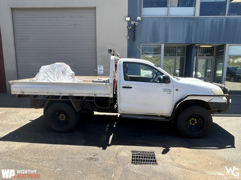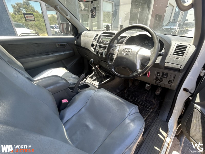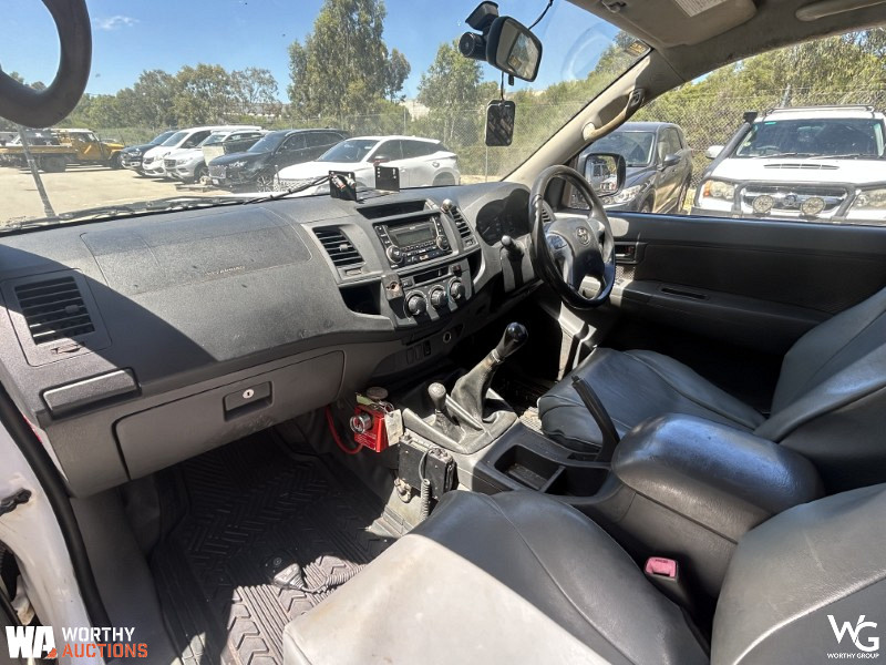2012 Toyota Hilux 150 Series SingleCab. VIN# MR0DZ22G500024017. Manual transmission. 3.0L Turbo Diesel 4 Cylinder engine. Odometer showing 134447kms. Registration 1EGG775 expires August 2026. This vehicle has not undergone a mechanical inspection by Worthy Group. A basic visual inspection has been conducted. All vehicle performance details are based on information provided by the seller. Worthy Auctions does not guarantee the accuracy or completeness of this information. Buyers are strongly encouraged to perform their own inspections and due diligence prior to purchase.