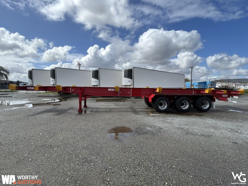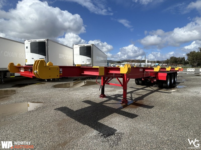 2014 Krueger Skel Trailer. K-Hitch Tri Axle Heavy Duty 20T Spring Suspension. K-Hitch Heavy Duty 20T Drum Brake Axle. Serial# 6FH7105GAEM015350. *Note - Over dimensional. Cannot be licensed for on road. Onsite purposes only*