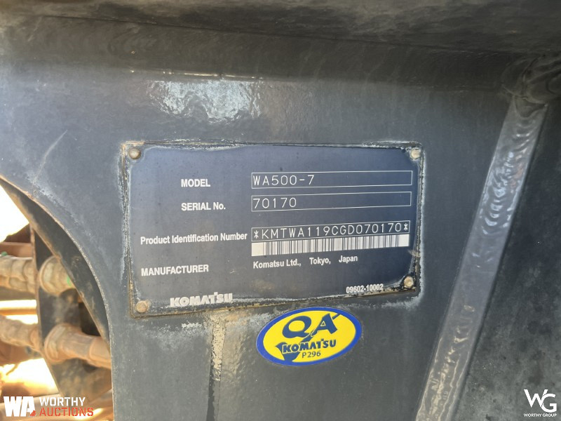 2016 Komatsu WA500-7 Wheel Loader. PIN# KMTWA119CGD070170. Hours showing 13778. Inspection recommended. Located in Kalgoorlie. *Available subject to prior sale*